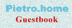 | Antonio Rappa - 19 Luglio 1999 - 09.22 Palermo Italia Il tuo sito mi ha colpito complimenti.L'aspetto del � molto piacevole ed accurato(esattamente quello che non riesce a me).Penso di visitarti spesso perch� ho bisogno di avere un posto dove farmi conoscere � come vecchio compagno di corso auguri. Ciao. http://www.rappa.it |