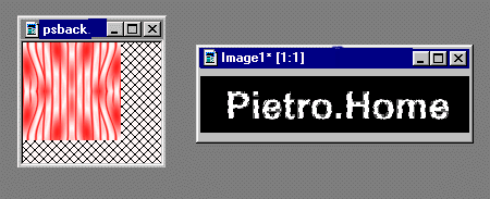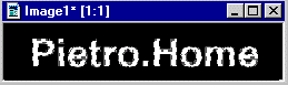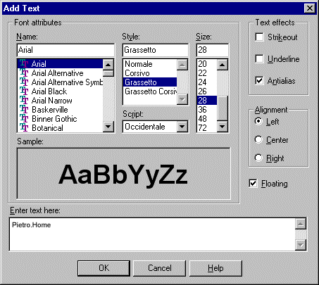 Selezionare dalla barra degli strumenti, l'icona TEXT (una lettera A) Cliccare sullo sfondo nero col pulsante sinistro del mouse. Scegliere FONT=Arial STYLE=Grassetto SIZE=28 e scrivere nello spazio apposito: "Pietro.Home" (o altro testo).