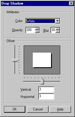 Andare sul menù IMAGE - SPECIAL EFFECTS - ADD DROP SHADOW. Nella maschera inserire i dati: COLOR=White OPACITY=200 BLUR=30 OFFSET-VERTICAL=3 OFFSET-ORIZZONTAL=3