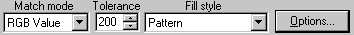 Cliccare sulla finestra della nostra immagine poi cliccare sullo strumento FLOOD FILL (icona di un barattolo che si rovescia; si trova a sinistra dell'icona text). È l'icona del Riempimento. Controllare che sia presente la barra di stile (menù VIEW - STYLE BAR). Dalla barra di stile scegliere come valori: TOLERANCE=200 FILL-STYLE=Pattern.